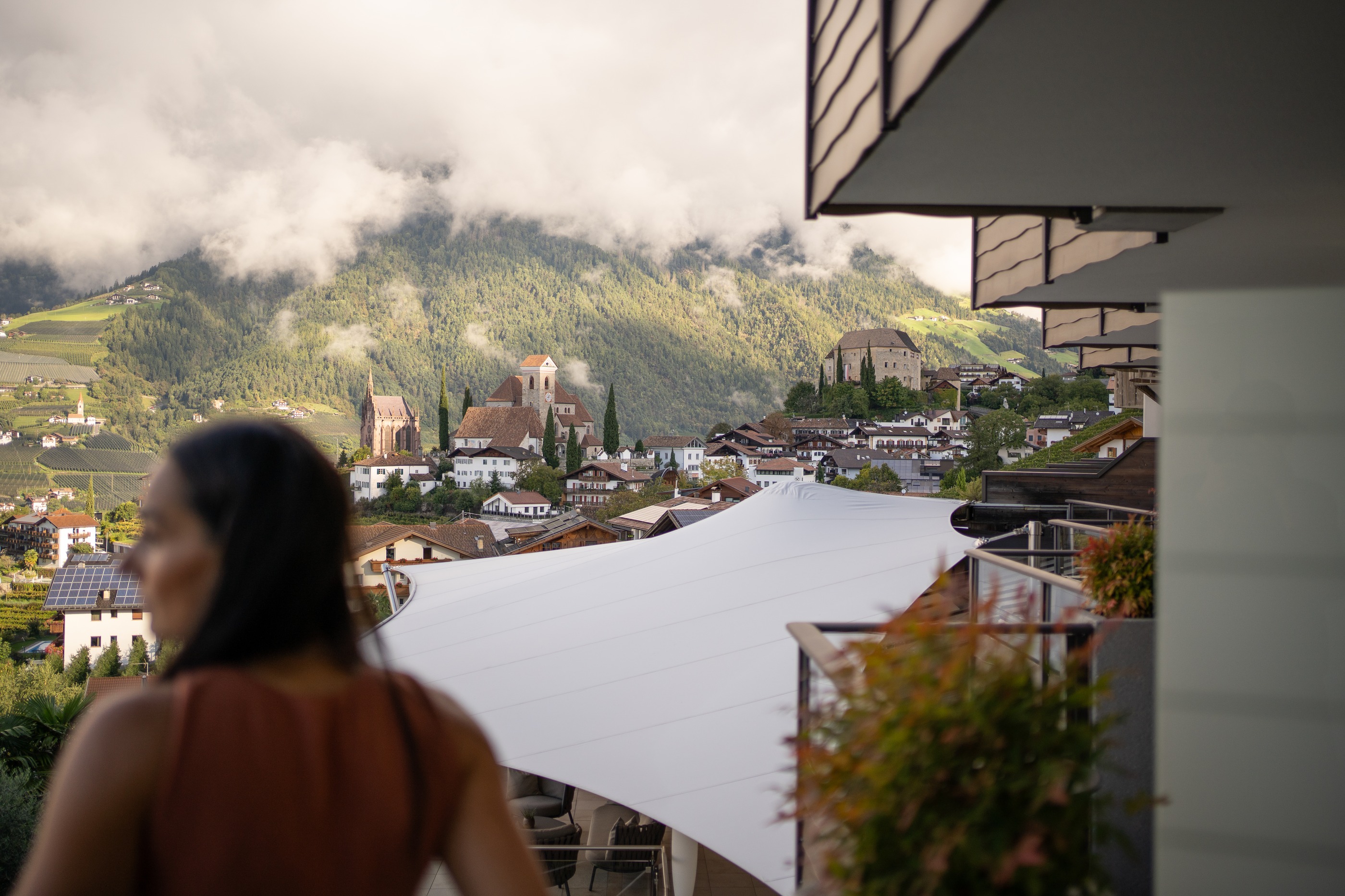 Colazione e cena con vista su Merano e la Val d’Adige.